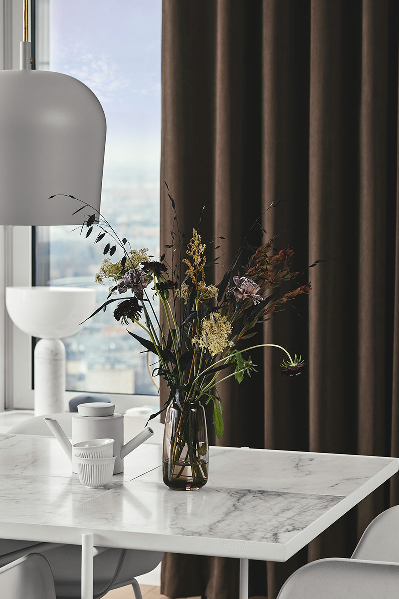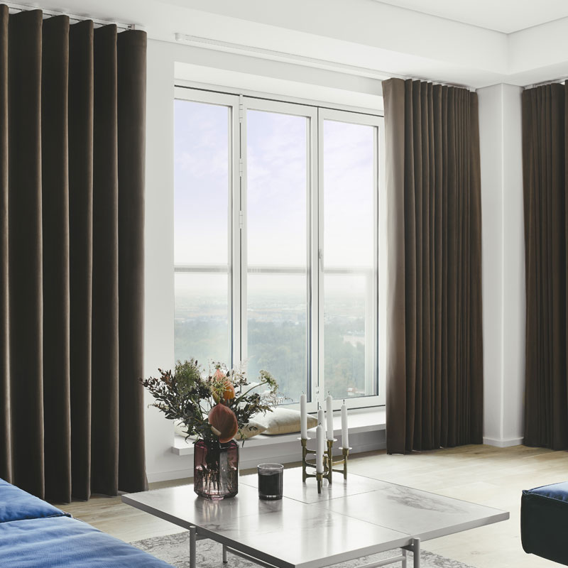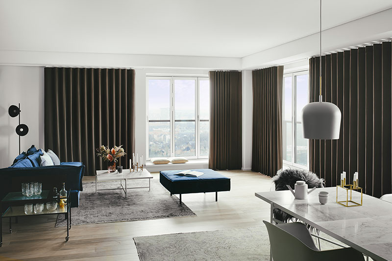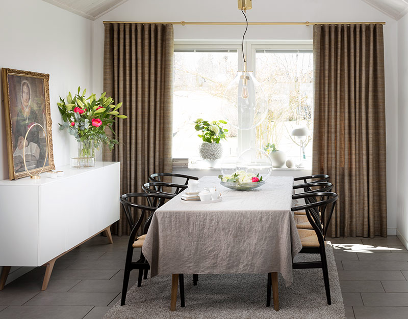 Långa, svepande gardiner skapar en alldeles speciell sinnesstämning i ett rum. Det ramar in fönstren och ger en lyxig känsla till rummets helhet men också till detaljer och annan inredning. Det kan vara snyggt att hänga dem från golv till tak – det ger en illusion av hög takhöjd och mera rymd.